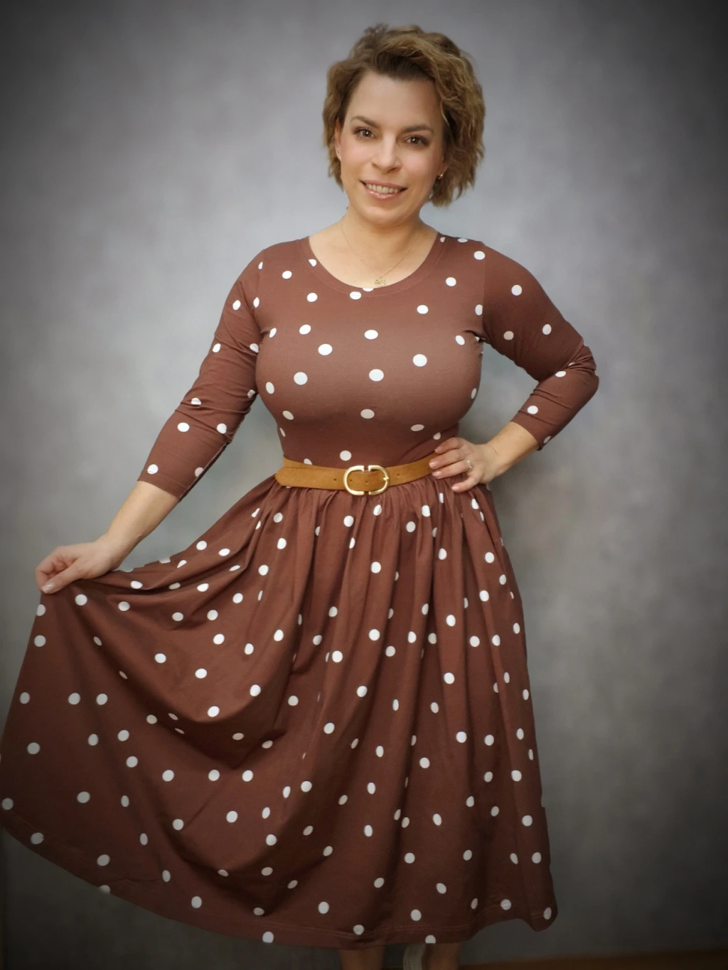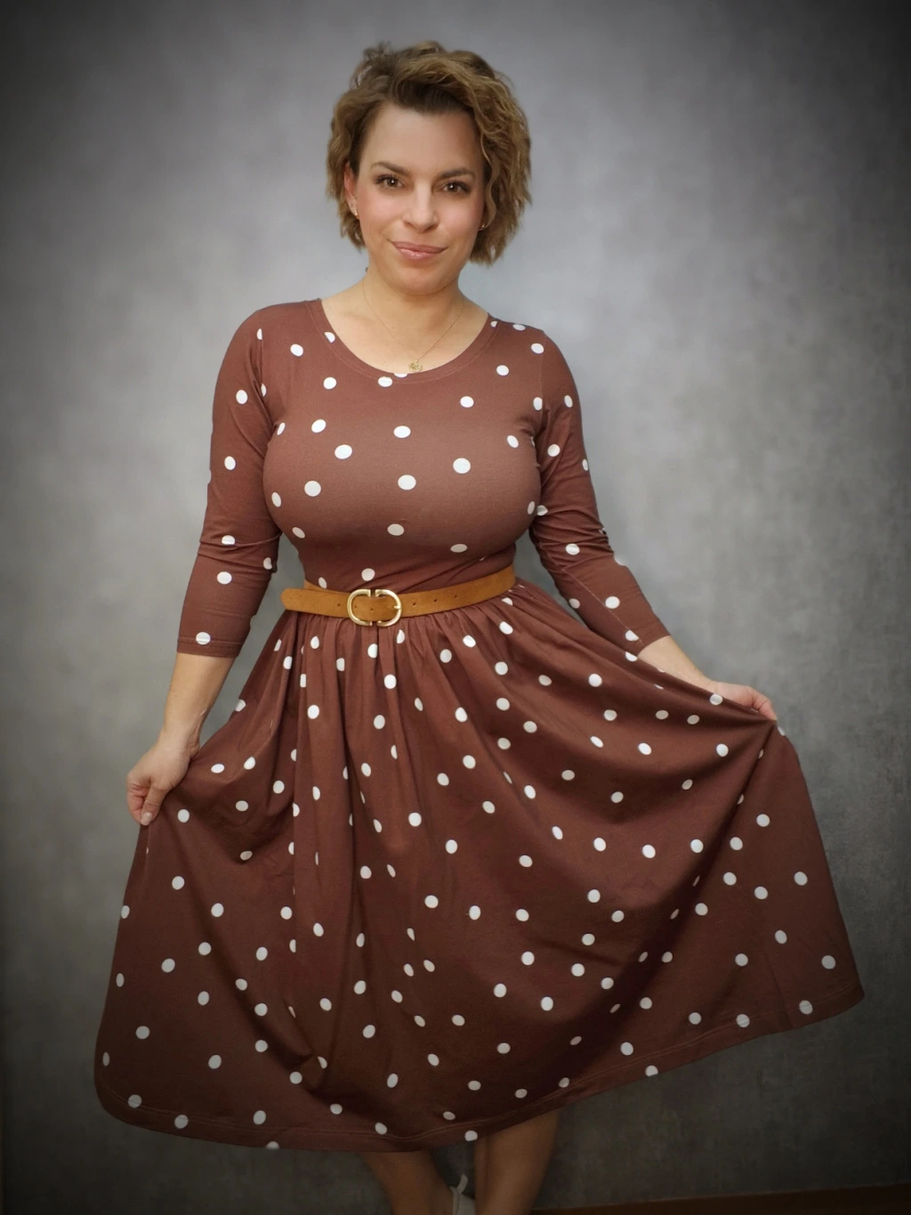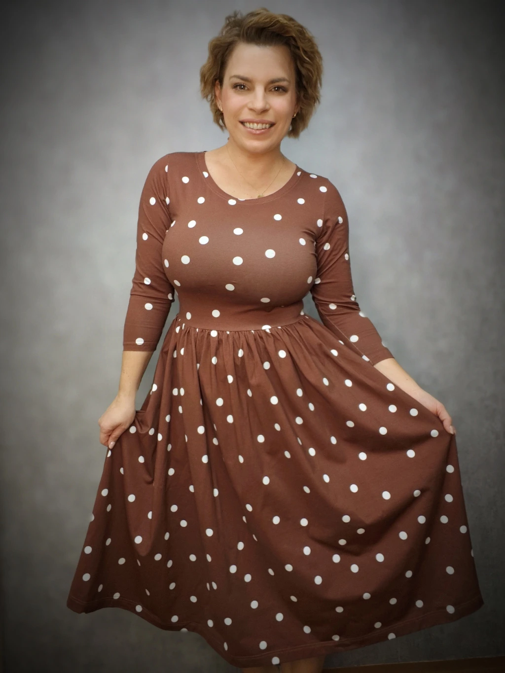 BeDarcy´s šaty - puntíky na hnědé