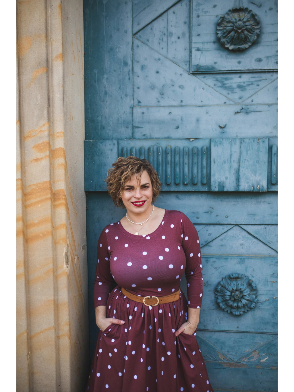 Šaty mají 3/4 rukáv. Výstřih kulatý a praktické kapsy, které jsou důmyslně skryté v bočním švu, avšak nijak nerozšiřují. Úzký živůtek a široká nabraná sukně krásně zvýrazní ženskou siluetu a skryje menší bříško.