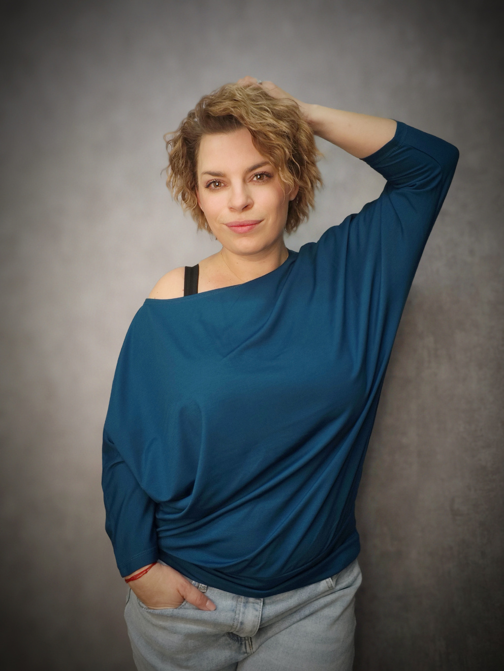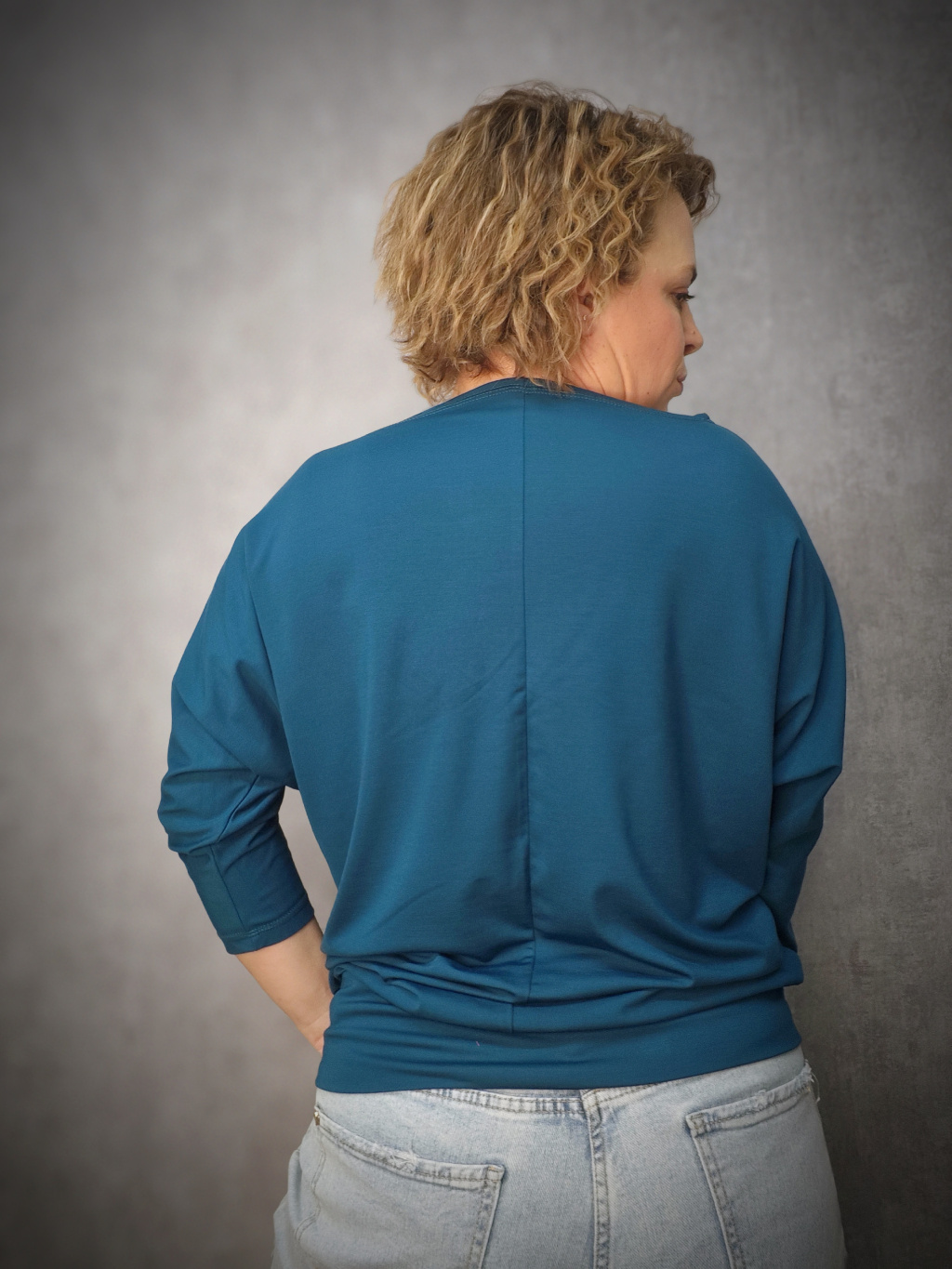 šířka cca 65 cm ( je to netopýří střih, rozšiřuje se už v bocích)