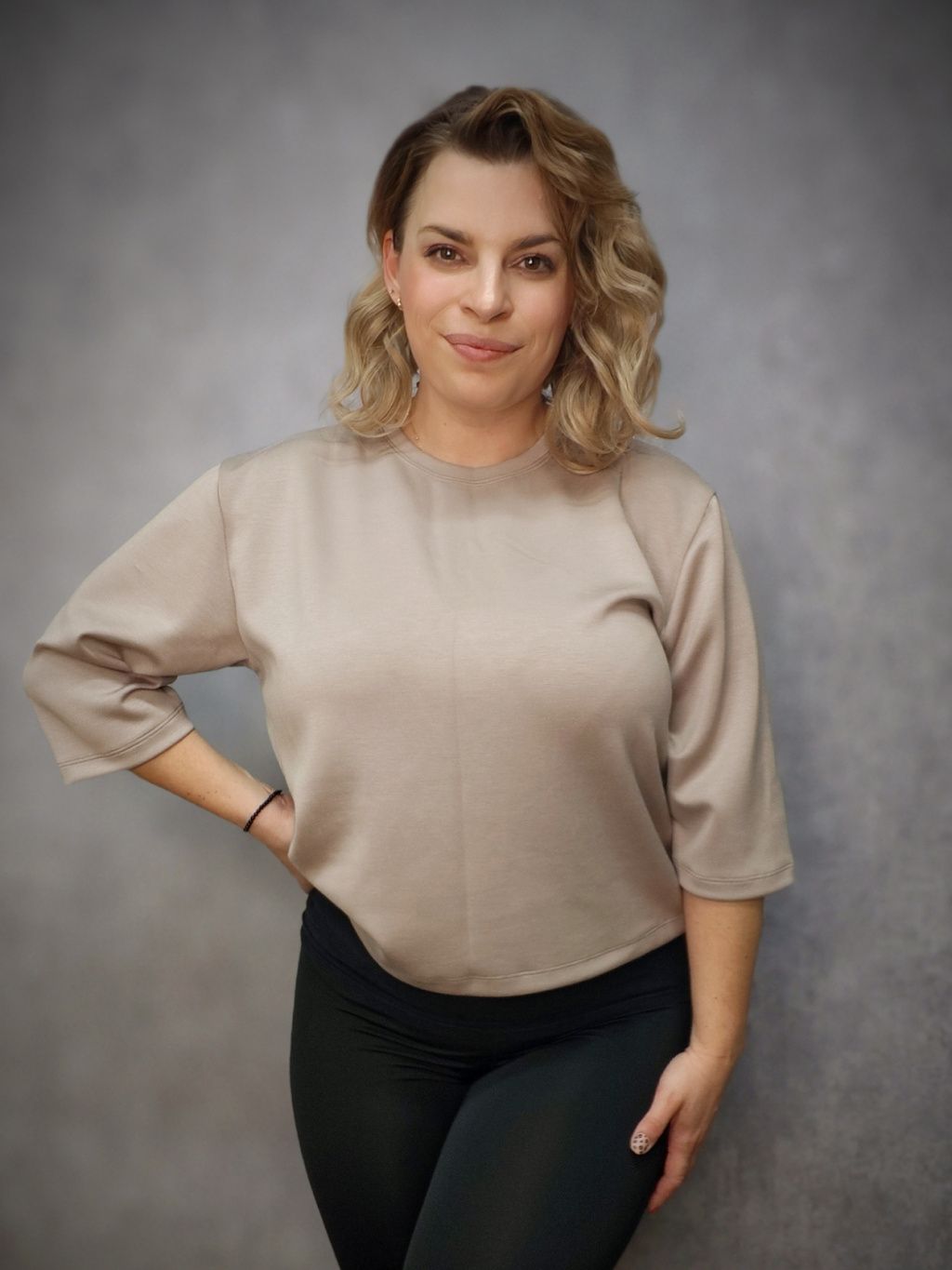 Střih trička je volnější s mírně spadlými rukávy.