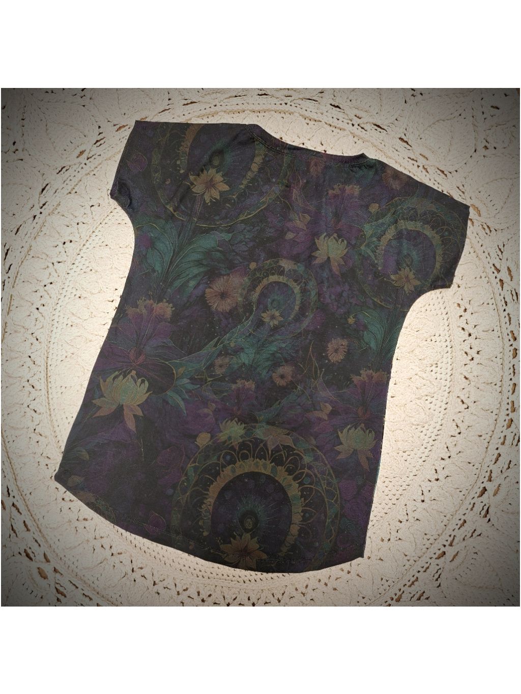 Pozn. Je to digitální tisk tmavý na světlém podkladu, proto doporučuji praní nejlépe v ruce, nebo v pračce naruby na málo otáček. Čím jemnější praní bude (bez odírání látky o sebe), tím déle vám vydrží krásné. Bílý chloupek, který se vytvoří po nešetrném vyprání je standardní chování digi tisku a není důvodem k reklamaci.