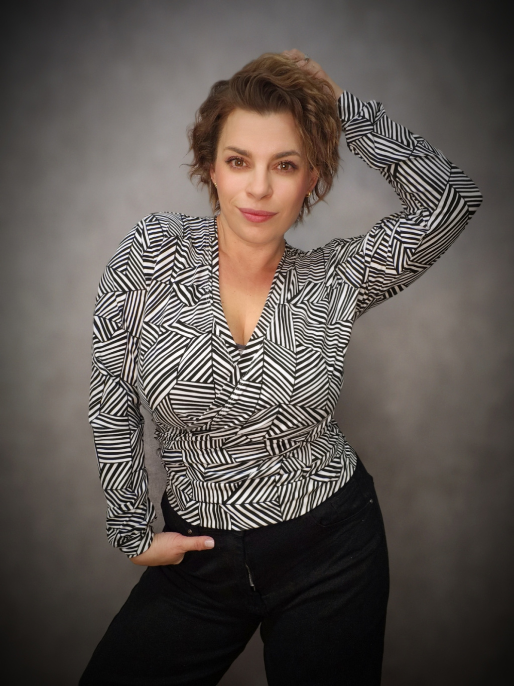 JustWrap tričko - černobílá geometrie