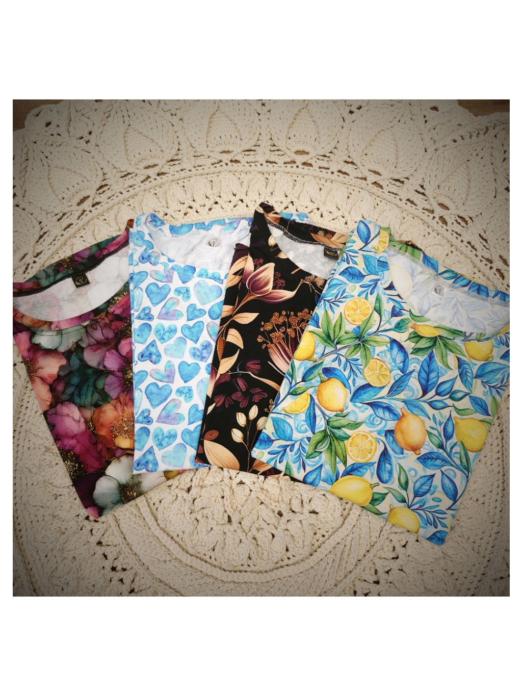 Pozn. Je to digitální tisk tmavý na světlém podkladu, proto doporučuji praní nejlépe v ruce, nebo v pračce naruby na málo otáček. Čím jemnější praní bude (bez odírání látky o sebe), tím déle vám vydrží krásné. Bílý chloupek, který se vytvoří po nešetrném vyprání je standardní chování digi tisku a není důvodem k reklamaci.