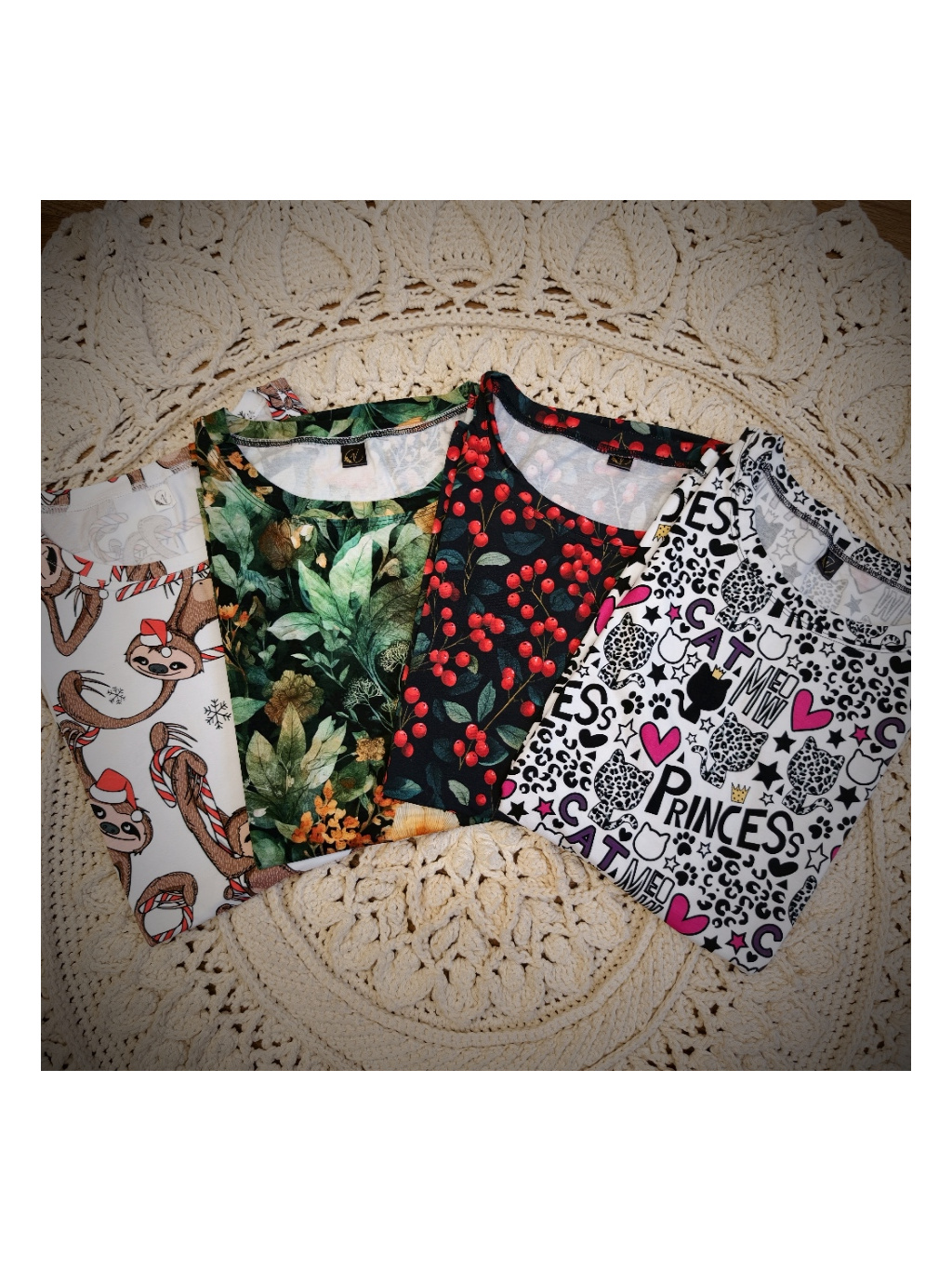 Pozn. Je to digitální tisk tmavý na světlém podkladu, proto doporučuji praní nejlépe v ruce, nebo v pračce naruby na málo otáček. Čím jemnější praní bude (bez odírání látky o sebe), tím déle vám vydrží krásné. Bílý chloupek, který se vytvoří po nešetrném vyprání je standardní chování digi tisku a není důvodem k reklamaci.