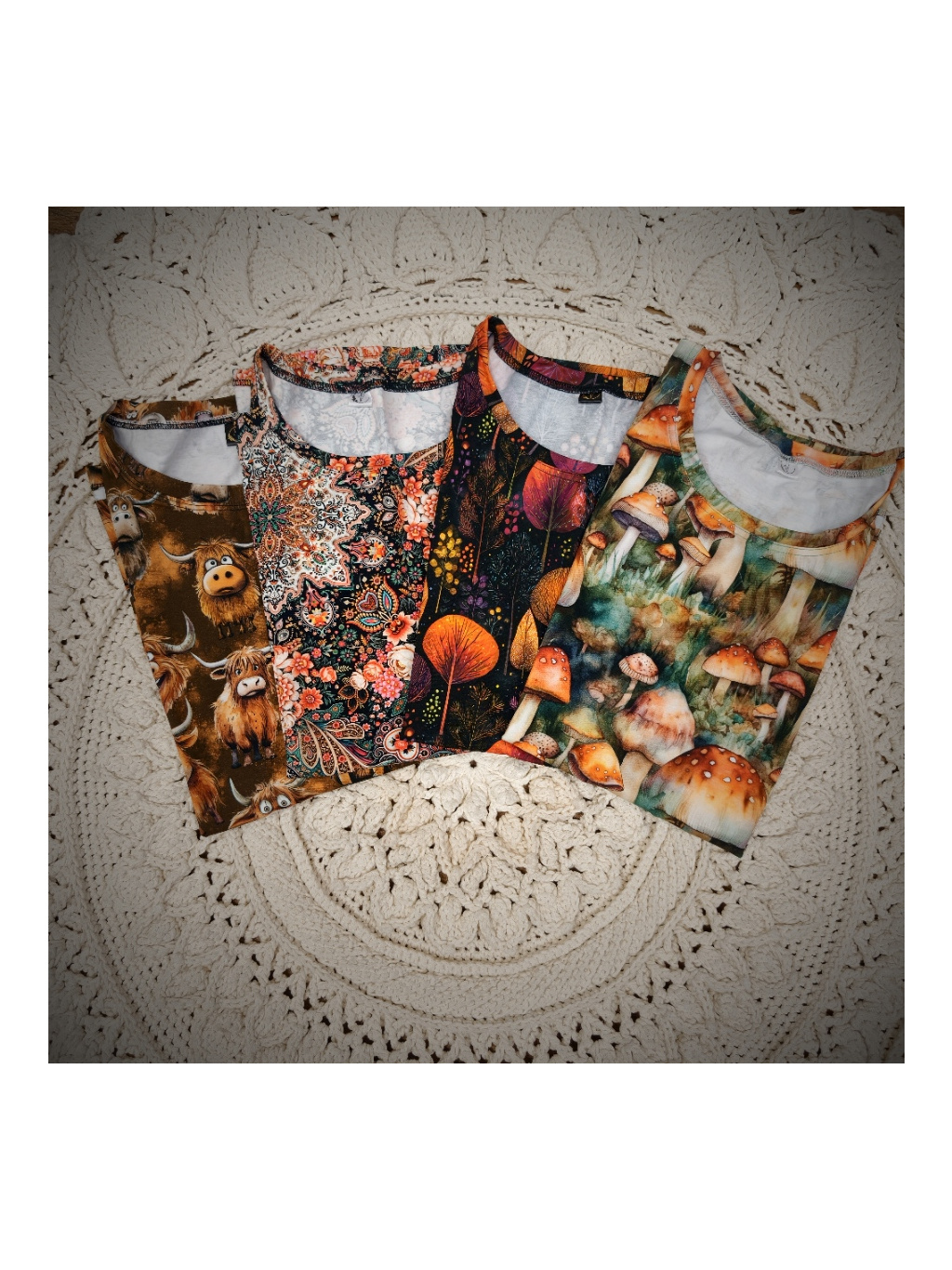 Pozn. Je to digitální tisk tmavý na světlém podkladu, proto doporučuji praní nejlépe v ruce, nebo v pračce naruby na málo otáček. Čím jemnější praní bude (bez odírání látky o sebe), tím déle vám vydrží krásné. Bílý chloupek, který se vytvoří po nešetrném vyprání je standardní chování digi tisku a není důvodem k reklamaci.