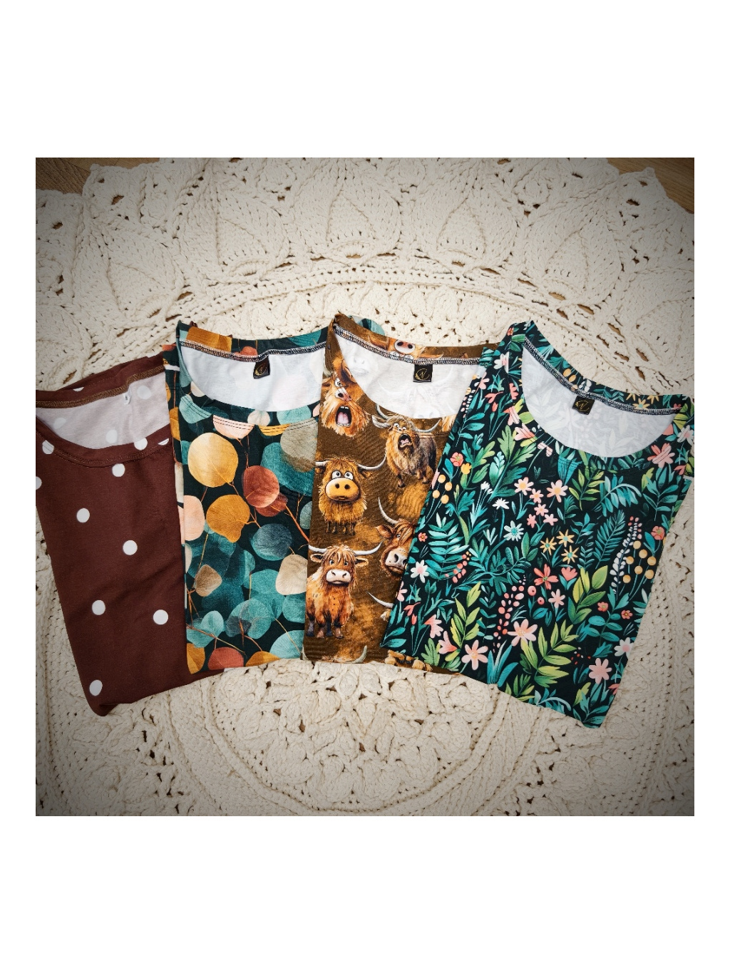 Pozn. Je to digitální tisk tmavý na světlém podkladu, proto doporučuji praní nejlépe v ruce, nebo v pračce naruby na málo otáček. Čím jemnější praní bude (bez odírání látky o sebe), tím déle vám vydrží krásné. Bílý chloupek, který se vytvoří po nešetrném vyprání je standardní chování digi tisku a není důvodem k reklamaci.