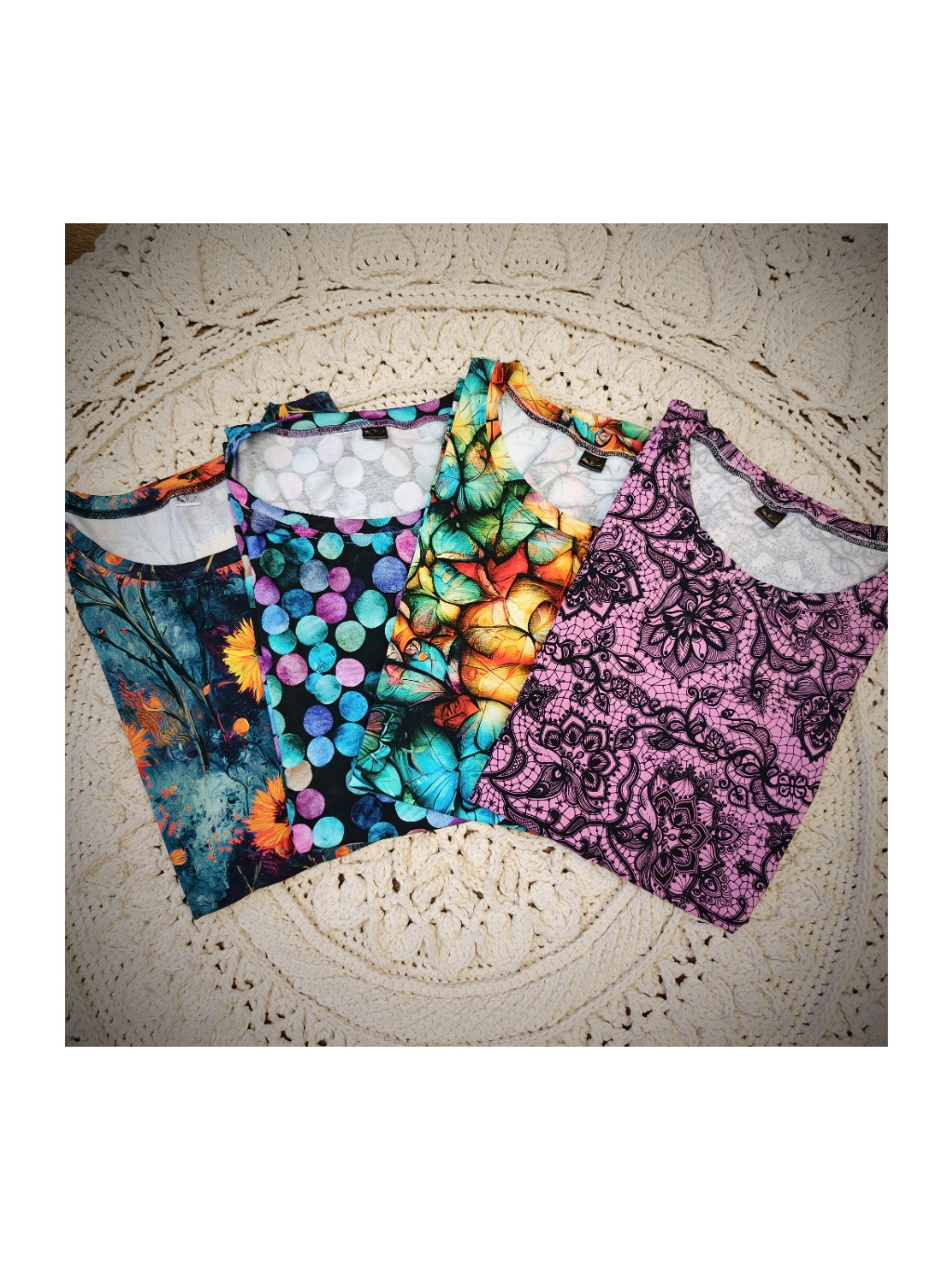 Pozn. Je to digitální tisk tmavý na světlém podkladu, proto doporučuji praní nejlépe v ruce, nebo v pračce naruby na málo otáček. Čím jemnější praní bude (bez odírání látky o sebe), tím déle vám vydrží krásné. Bílý chloupek, který se vytvoří po nešetrném vyprání je standardní chování digi tisku a není důvodem k reklamaci.