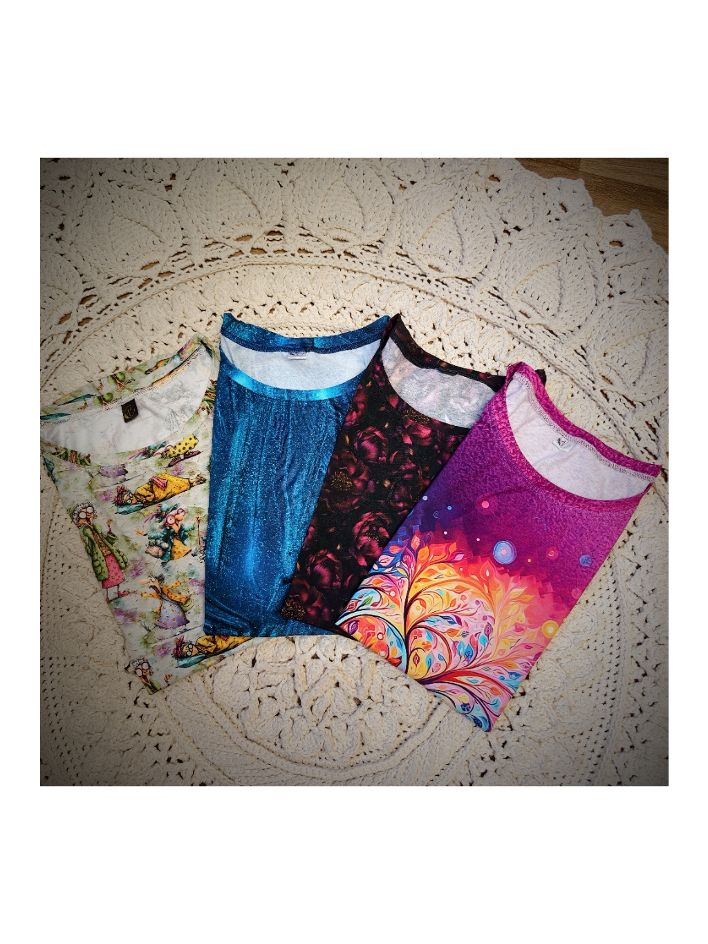 Pozn. Je to digitální tisk tmavý na světlém podkladu, proto doporučuji praní nejlépe v ruce, nebo v pračce naruby na málo otáček. Čím jemnější praní bude (bez odírání látky o sebe), tím déle vám vydrží krásné. Bílý chloupek, který se vytvoří po nešetrném vyprání je standardní chování digi tisku a není důvodem k reklamaci.
