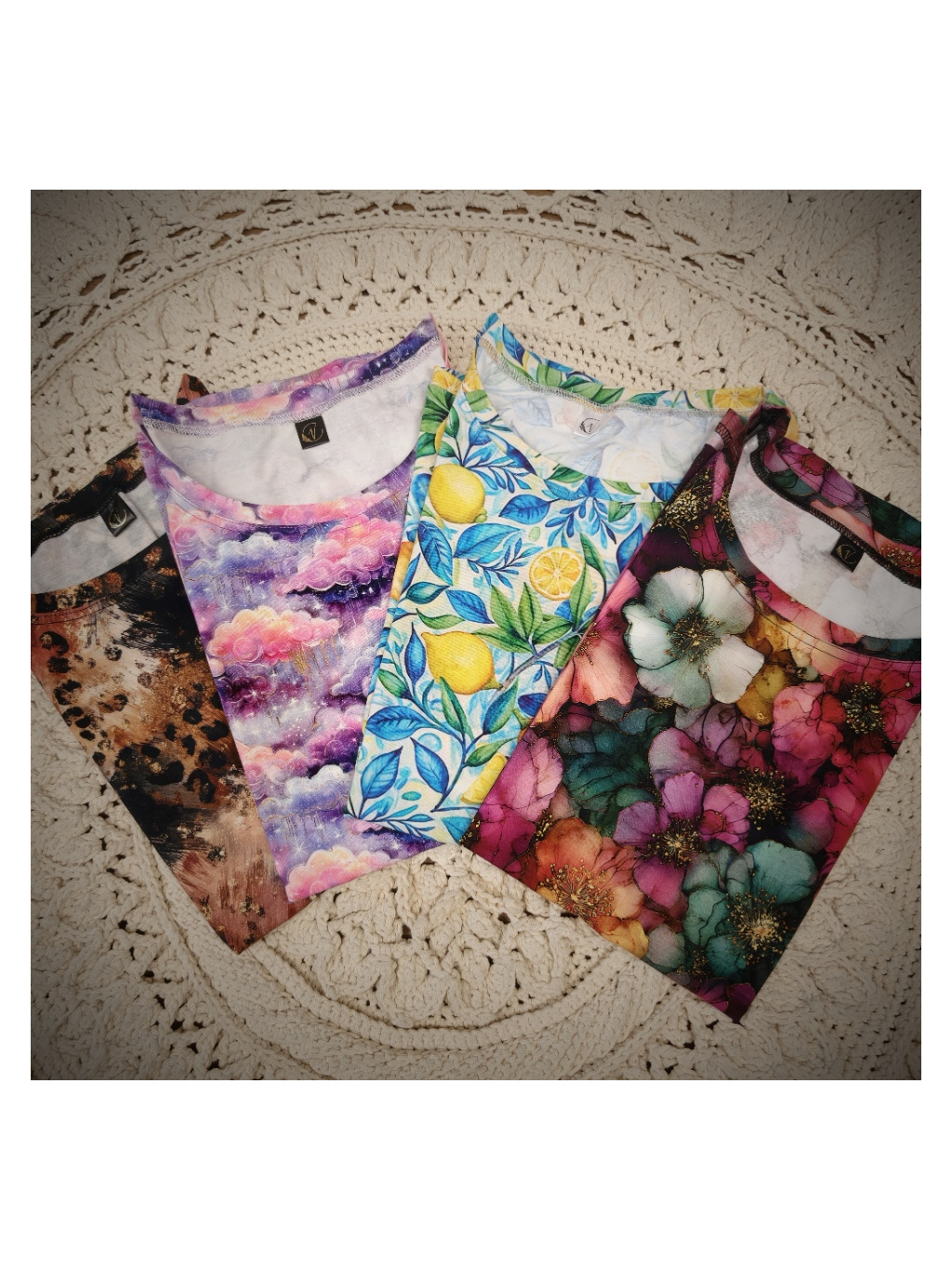 Pozn. Je to digitální tisk tmavý na světlém podkladu, proto doporučuji praní nejlépe v ruce, nebo v pračce naruby na málo otáček. Čím jemnější praní bude (bez odírání látky o sebe), tím déle vám vydrží krásné. Bílý chloupek, který se vytvoří po nešetrném vyprání je standardní chování digi tisku a není důvodem k reklamaci.