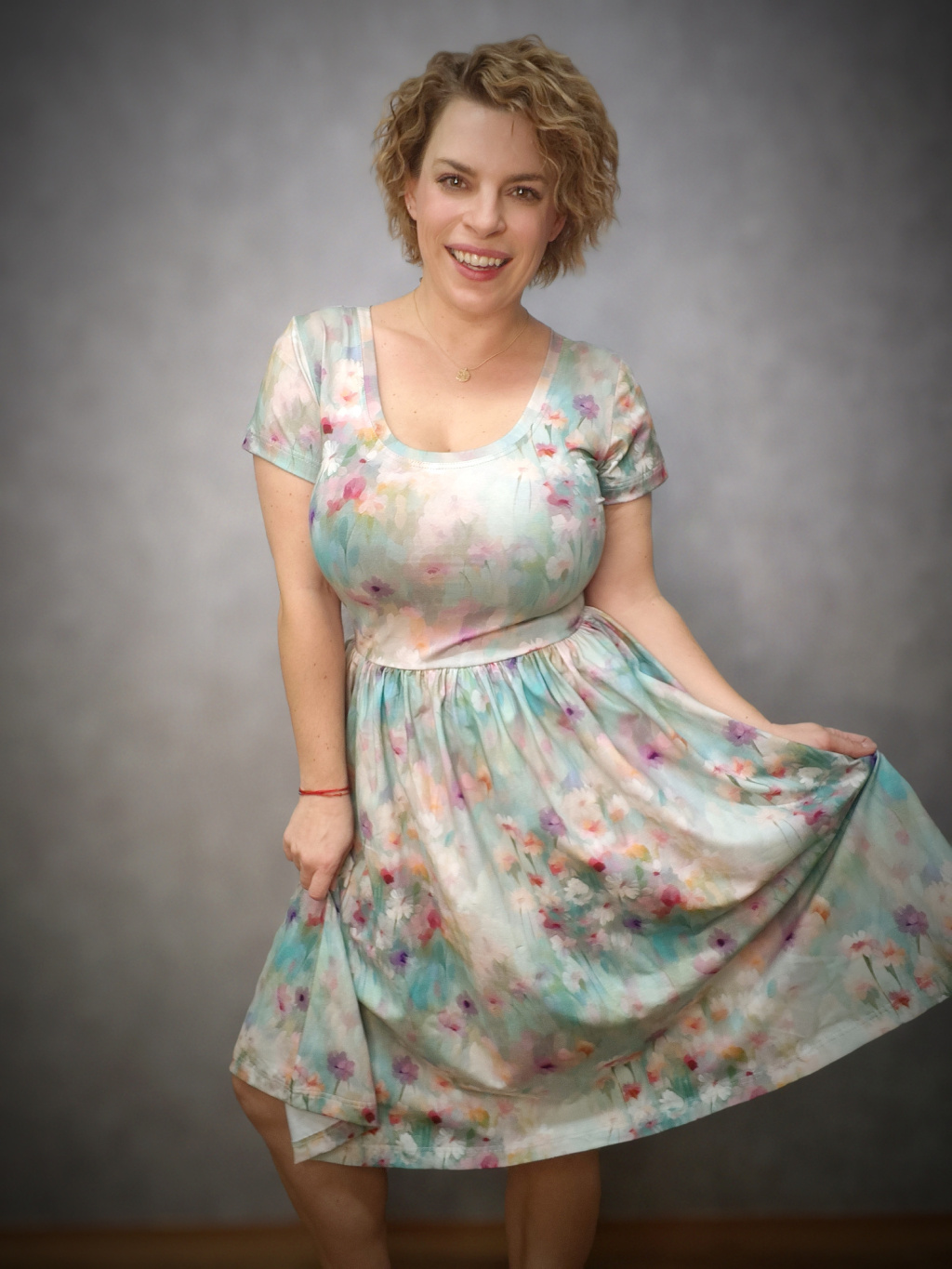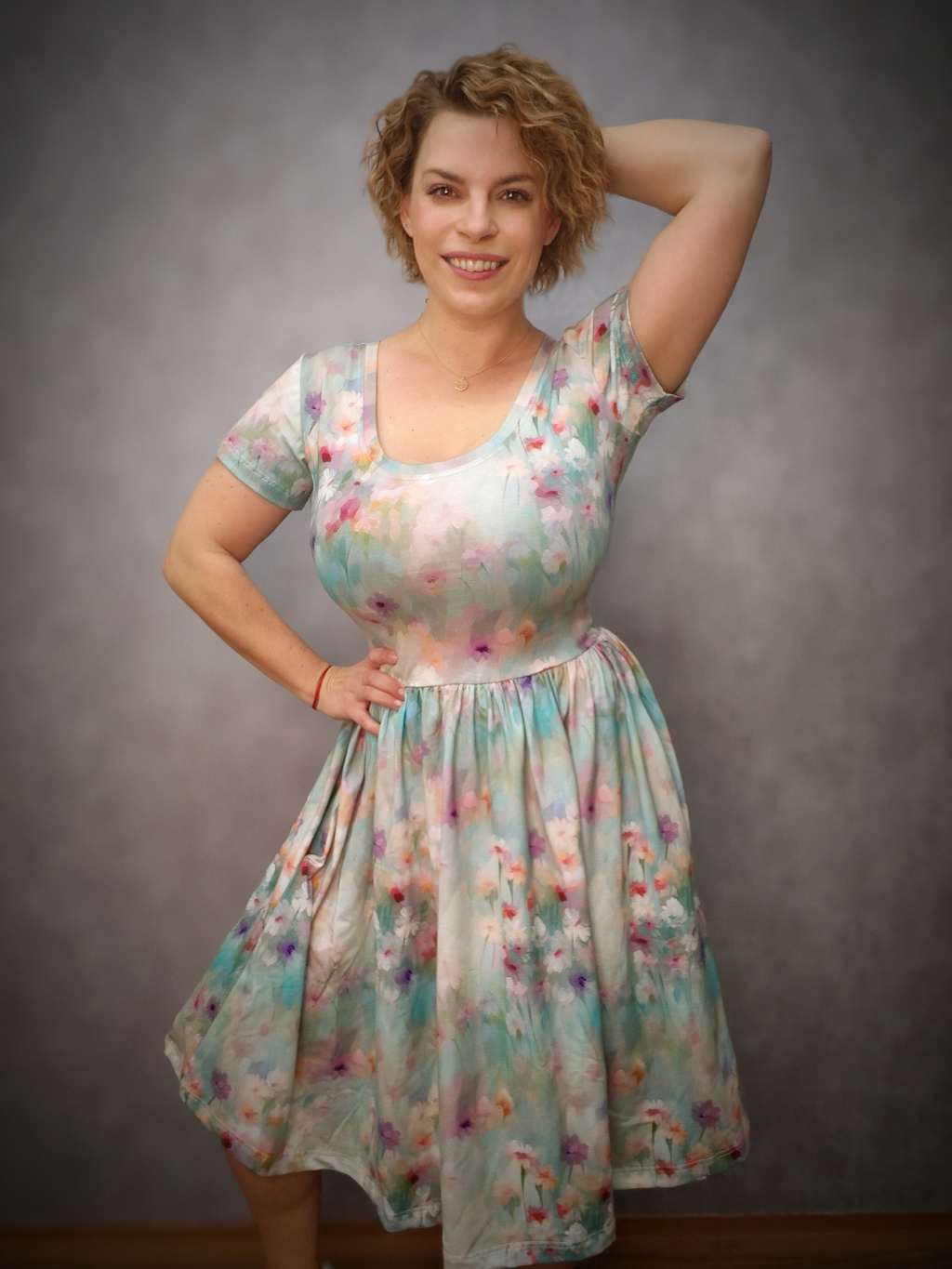 Širší řasená sukně zamaskuje menší bříško a ve spojení s úzkým živůtkem krásně zvýrazní ženskou siluetu. Šaty mají krátký rukáv, vpředu kulatý výstřih a praktické kapsy, které jsou důmyslně skryté v bočním švu, avšak nijak nerozšiřují. Oproti klasickým BeChic mají delší živůtek a bohatší, širší sukni, která vytváří krásný kontrast s úzkým pasem.