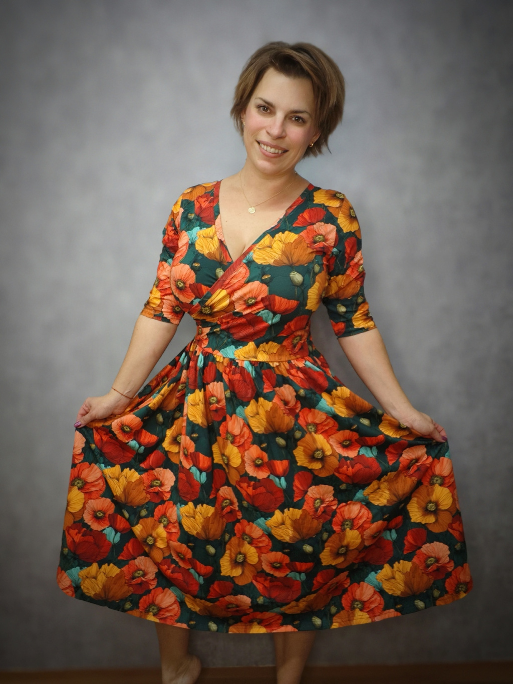 Šaty BeDiva prodloužené - žlutočervené máky