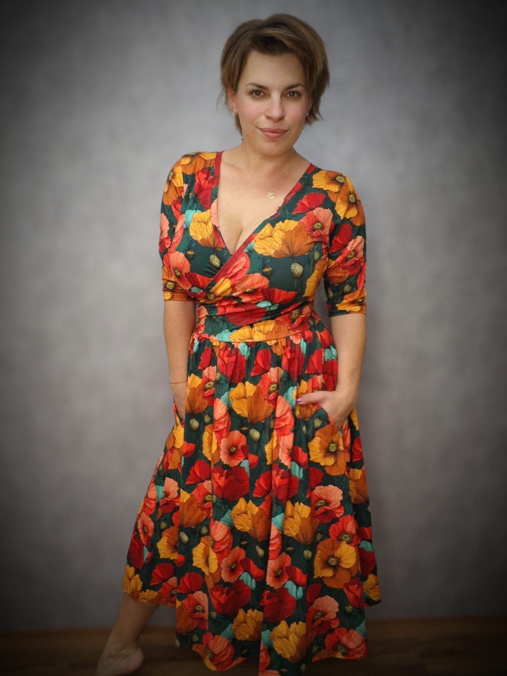 Střih šatů vychází z oblíbených BeChic+. Širší řasená sukně zamaskuje menší bříško a ve spojení s úzkým živůtkem krásně zvýrazní ženskou siluetu. Sukně je prodloužená. Šaty mají poloviční rukáv, vpředu výstřih v zavinovacím vzhledu, díky kterému můžete i pohodlně nakojit své mrně. Praktické kapsy, které jsou důmyslně skryté v bočním švu, avšak nijak nerozšiřují. Šaty mají bohatší sukni jako BeChic+, která vytváří krásný kontrast s úzkým pasem.