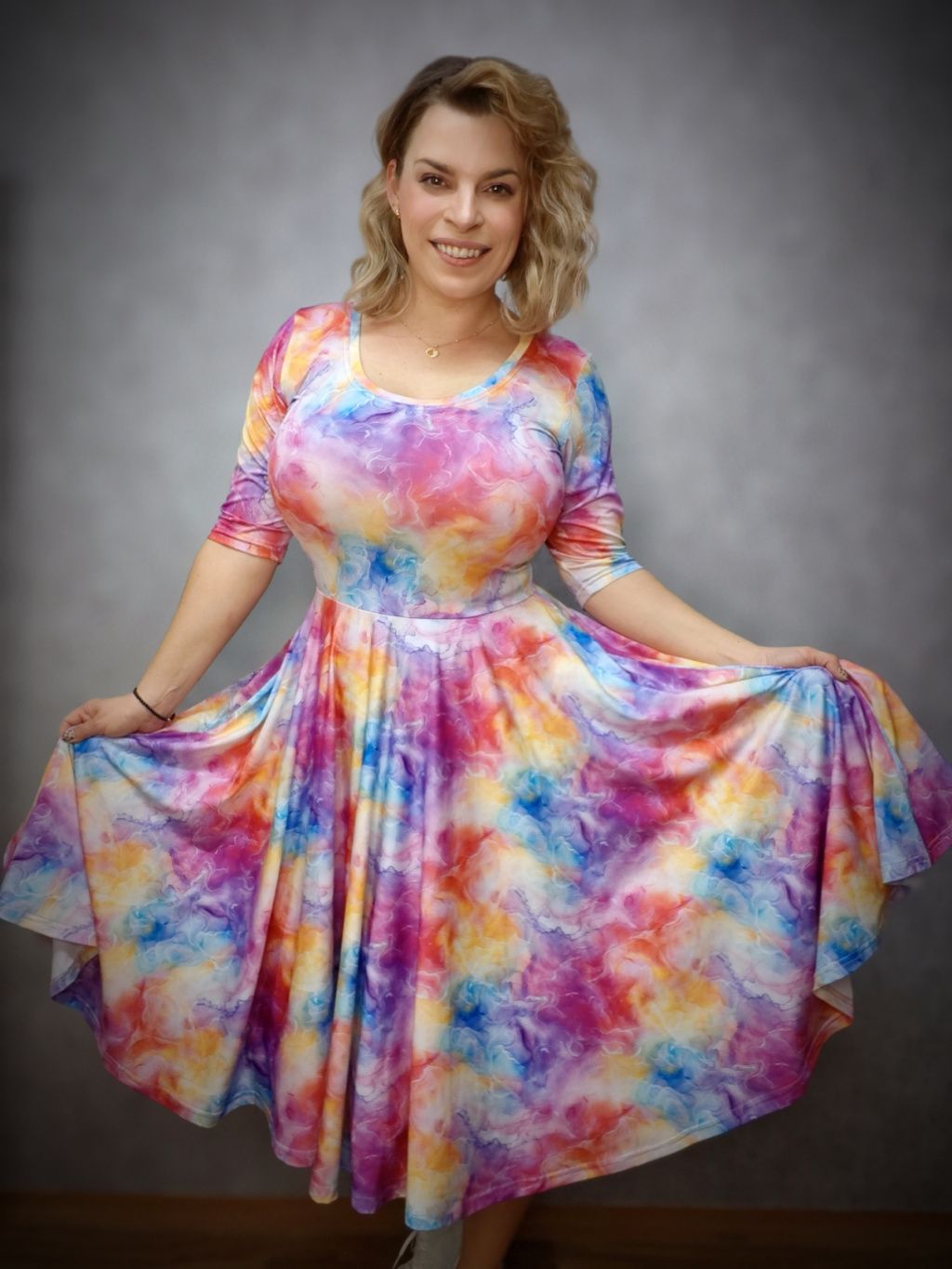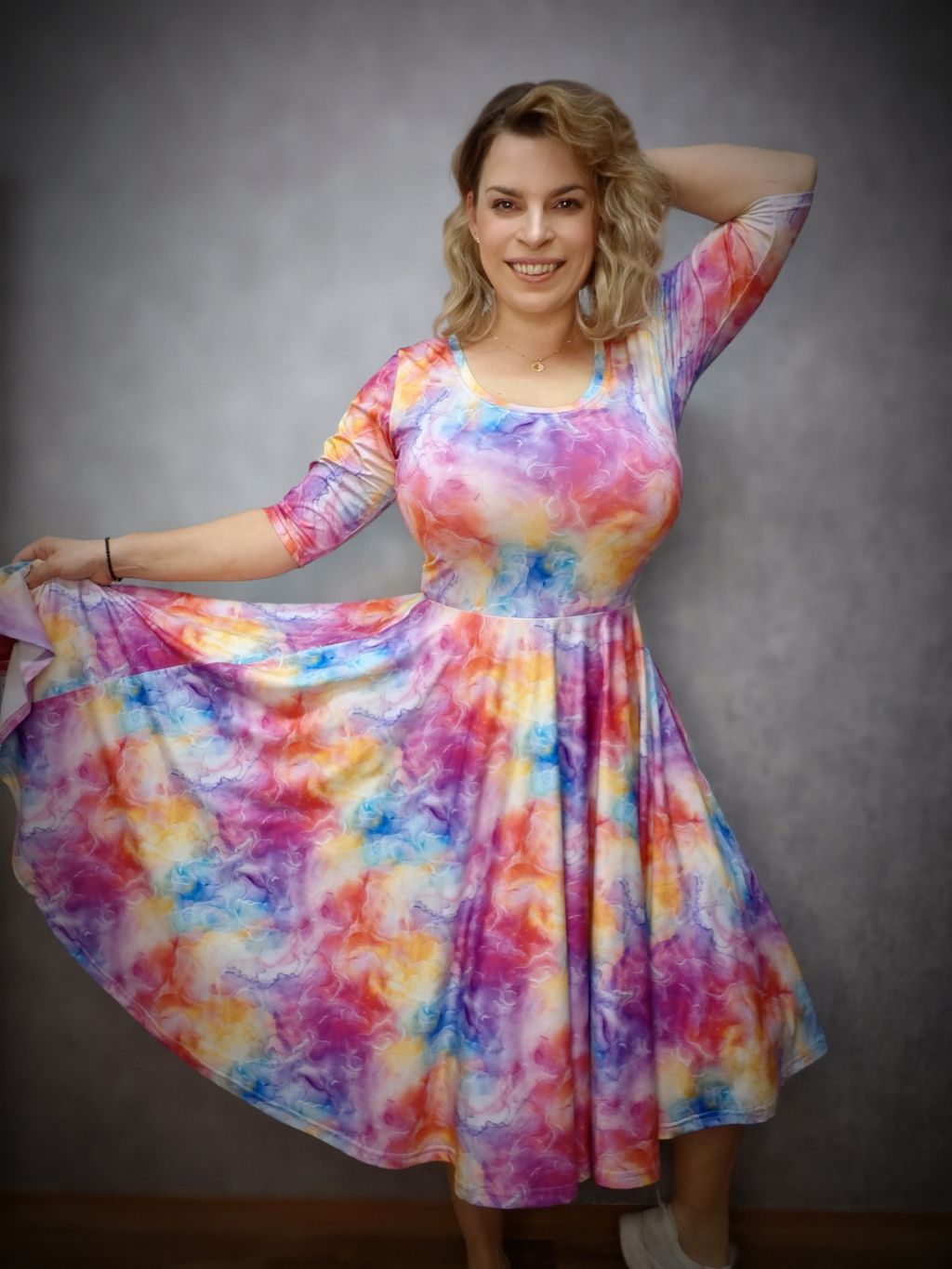 Šaty jsou vyrobené z příjemného měkkého funkčního úpletu silver. Nemusíte se tedy obávat, že šaty budou kousavé, nepříjemné nebo že se v nich zbytečně zapotíte. Díky elastanu jsou pružné a přizpůsobí se vaší siluetě. Úzký živůtek a široká kolová sukně krásně zvýrazní ženskou siluetu.