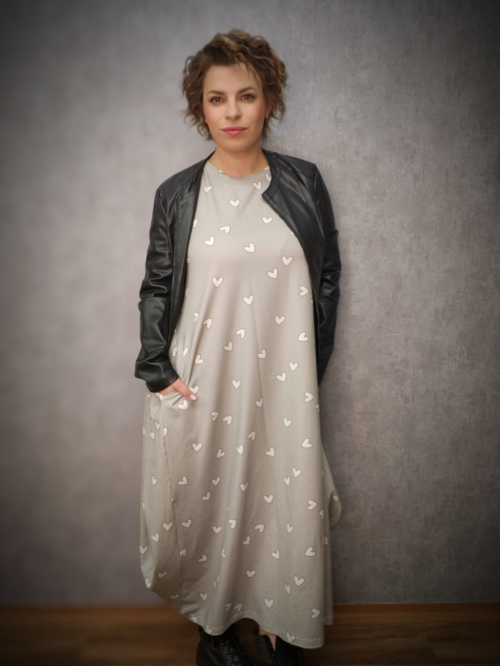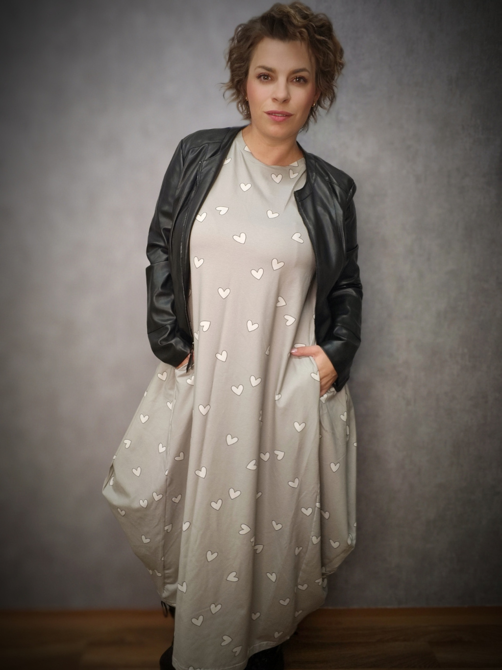 Šaty Norden - srdíčka na šedé - úplet