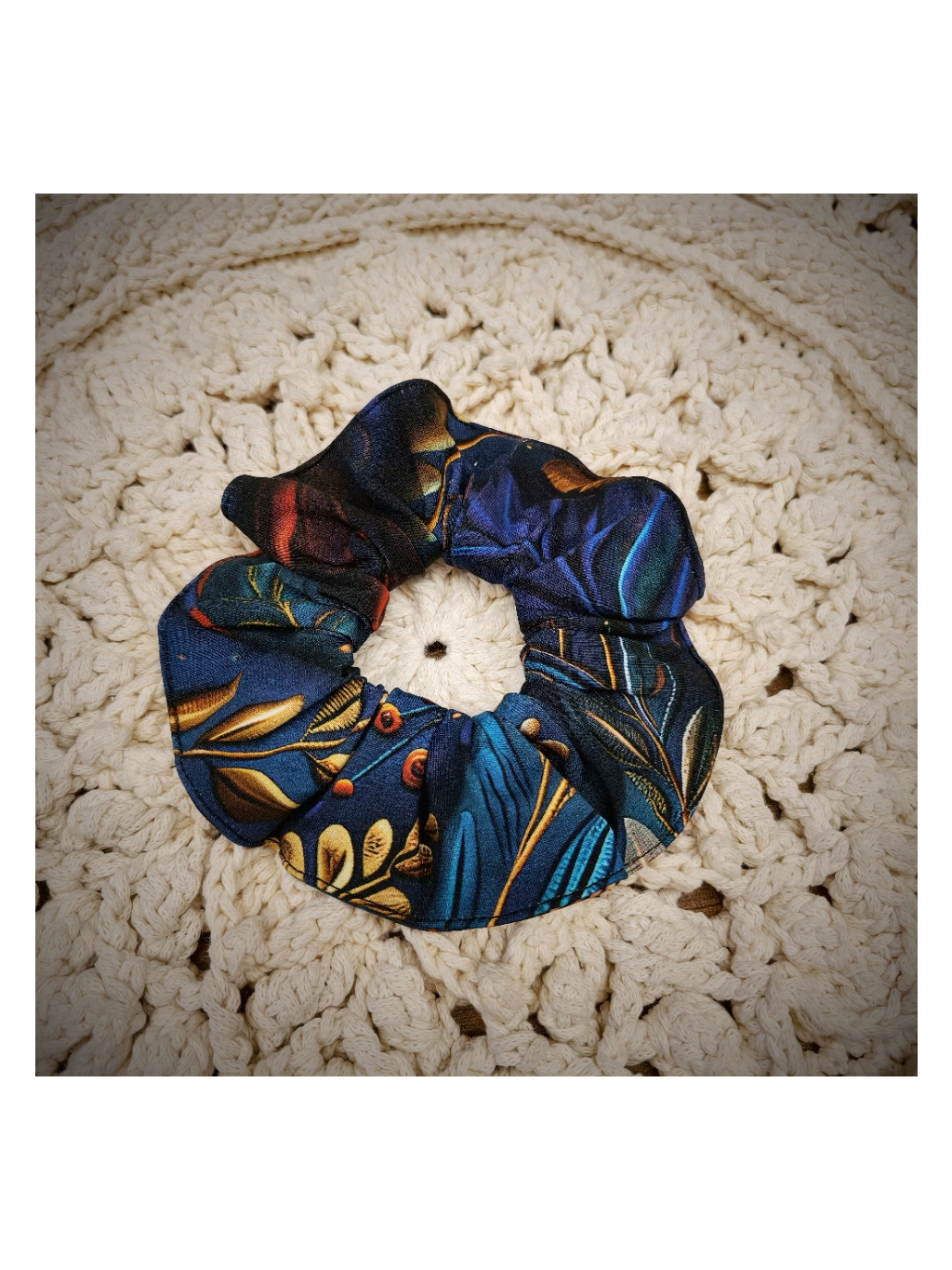 Scrunchie - modrozlaté listy