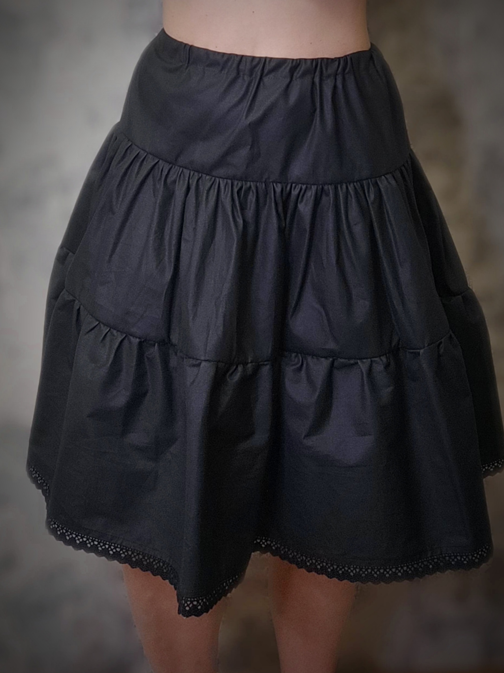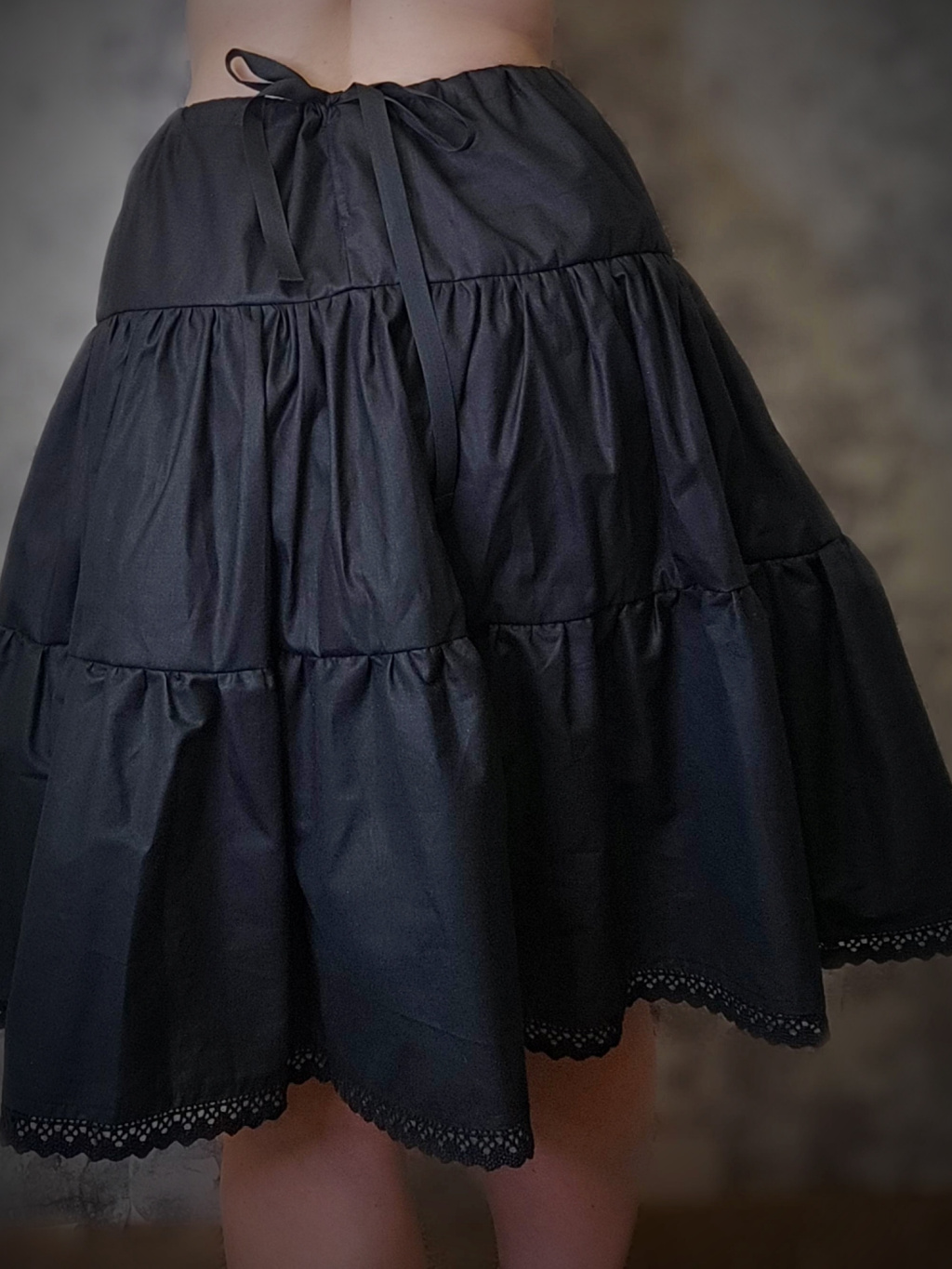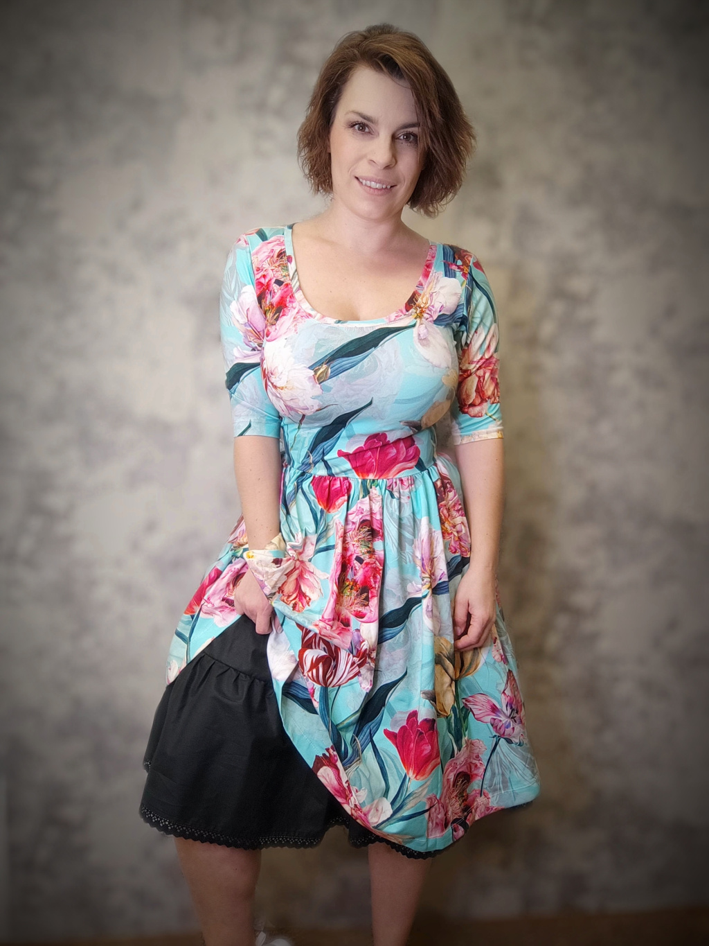 Celková délka cca 60 cm. Nejužší pás je šíře 105 cm u velikosti 1; 130 u velikosti 2, v pase si zavážete na šňůrku jak potřebujete.